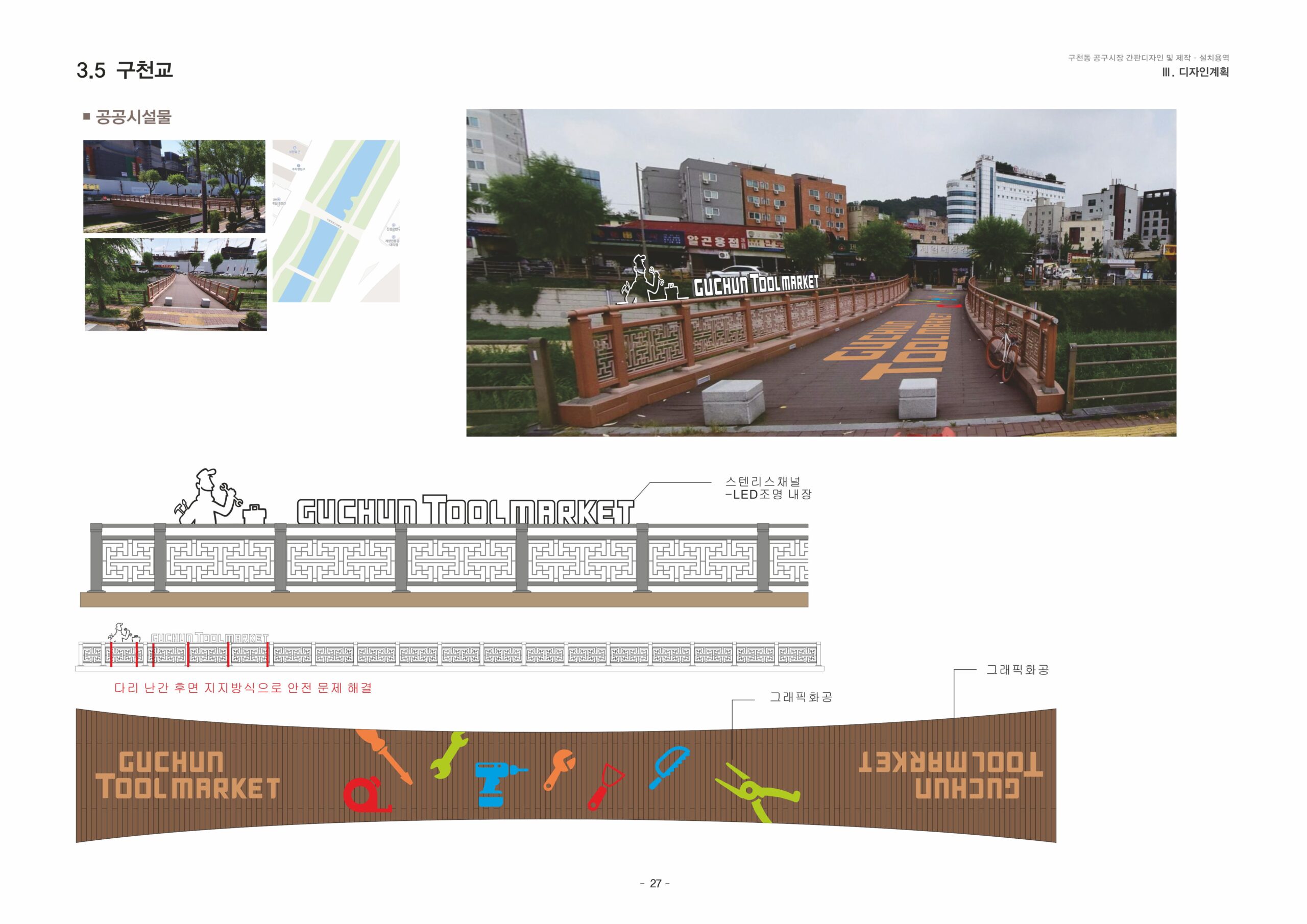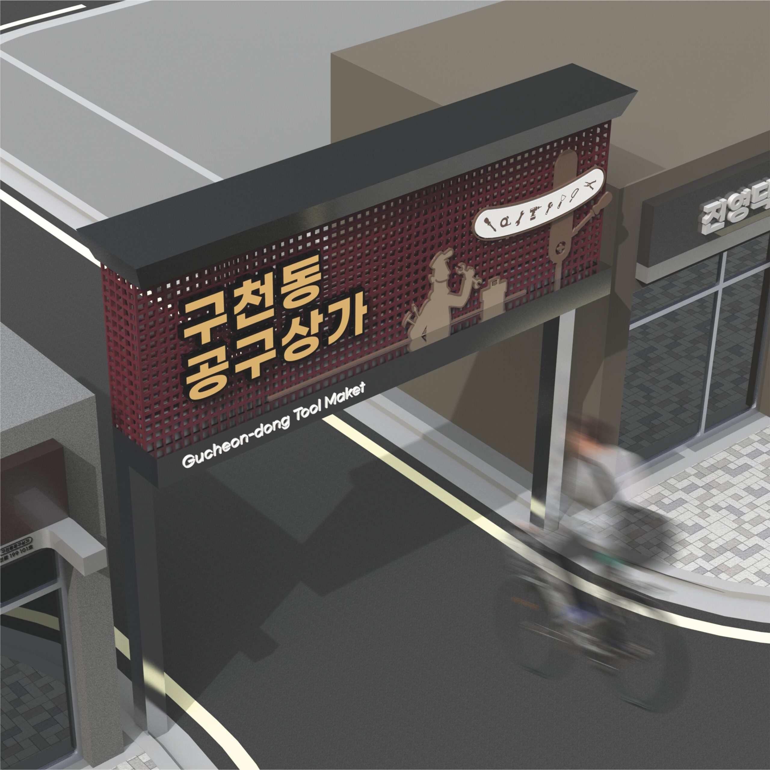 전통을 가진 역사깊은 구천동 공구시장의 복잡한 거리를 개선하여 공구시장을 찾는 고객들에게 정확한 정보를 전달하고 상인들에게 웃음을 주는 거리로 만들고자 합니다.