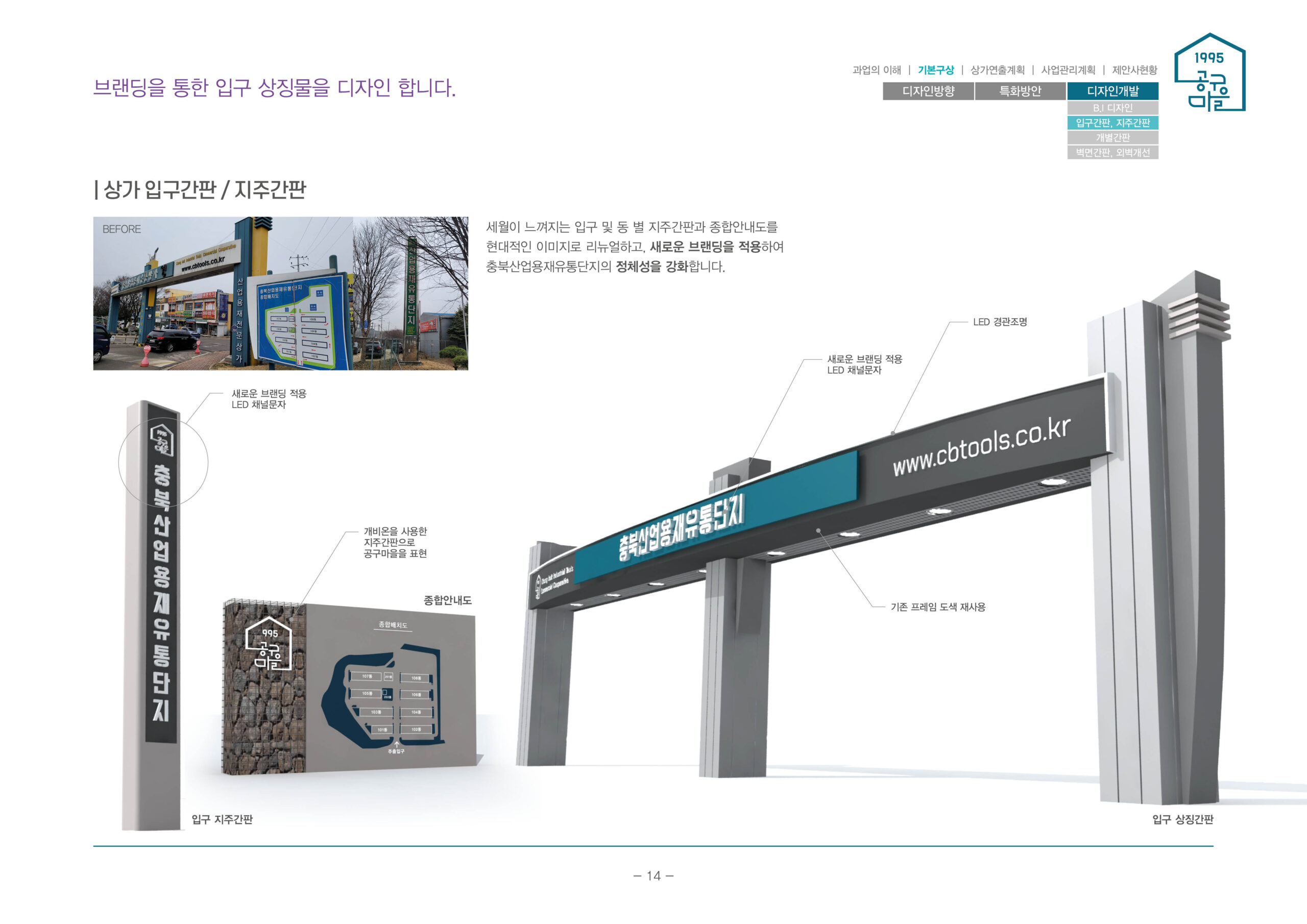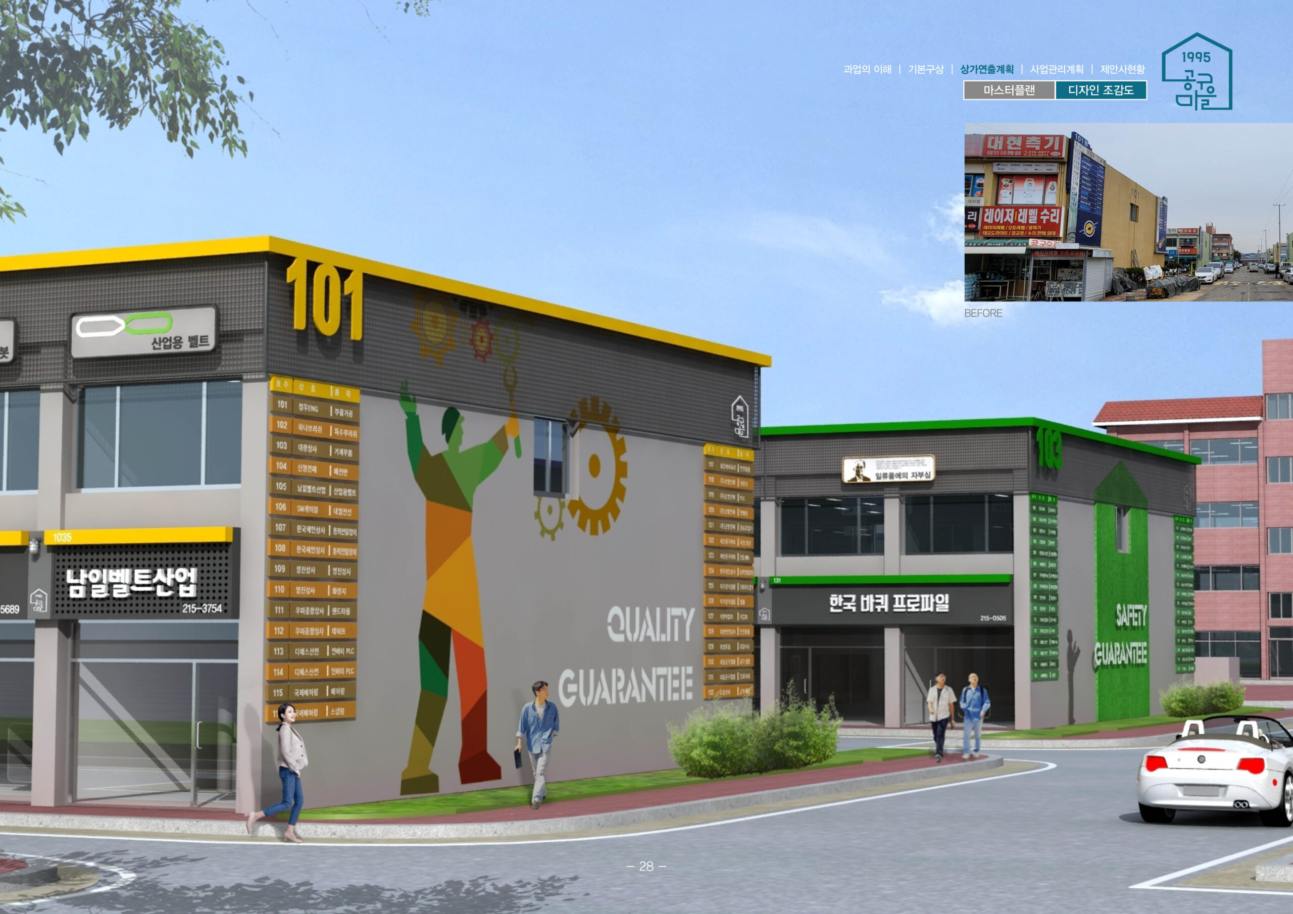 충북산업용재유통단지가 환경개선으로 다시 태어납니다. 노후화 된 이미지를 벗겨내고 새로운 이미지를 구축하여 가고싶은, 걷고싶은, 사고싶은 공구마을 함께 만들어갑니다.
