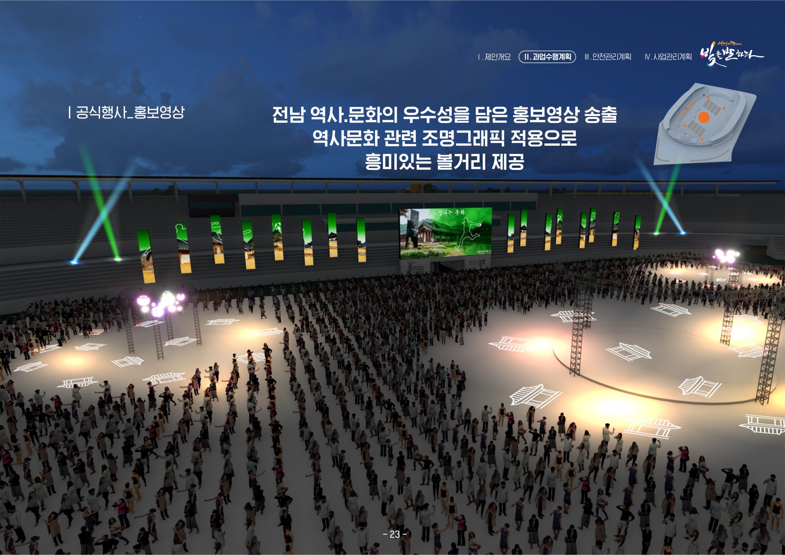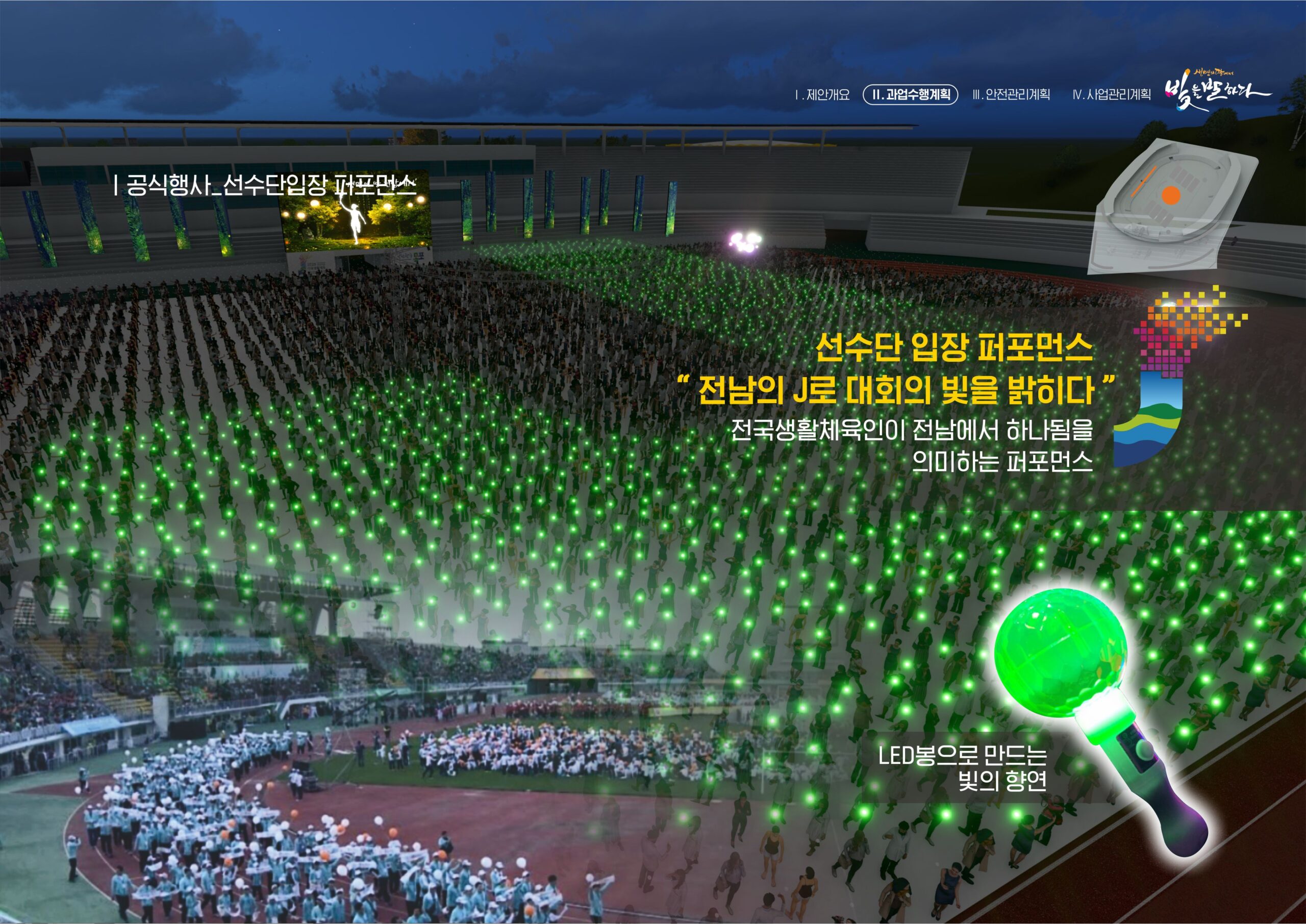 생명의 땅 전남에서 생활체육인들의 축제가 펼쳐집니다. 방문객 및 도민모두가 즐기는 전국화합의 장을 조성하고 전남의 우수한 정체성과 역사문화가 빛으로 발하는 시간을 만들어갑니다.