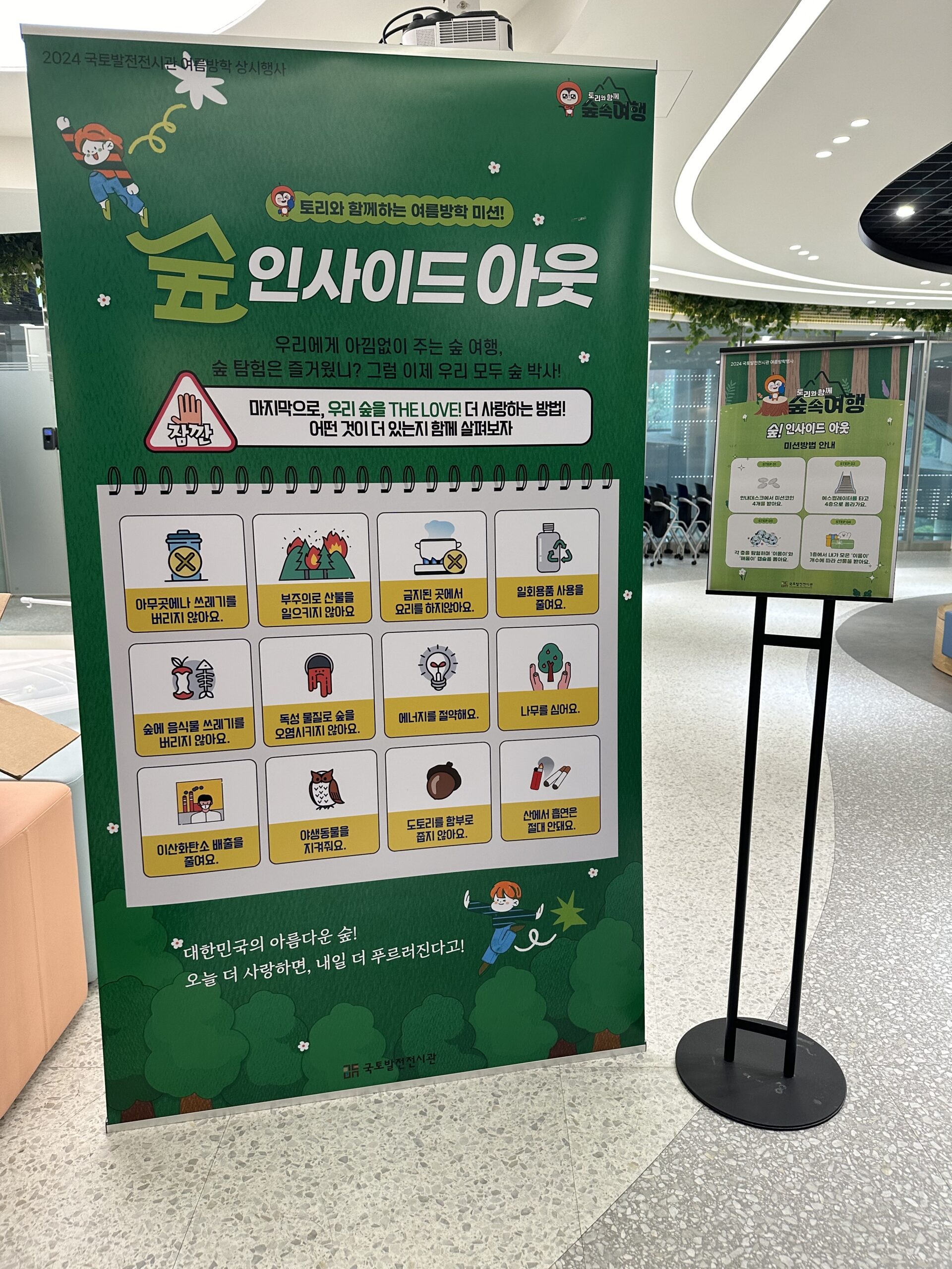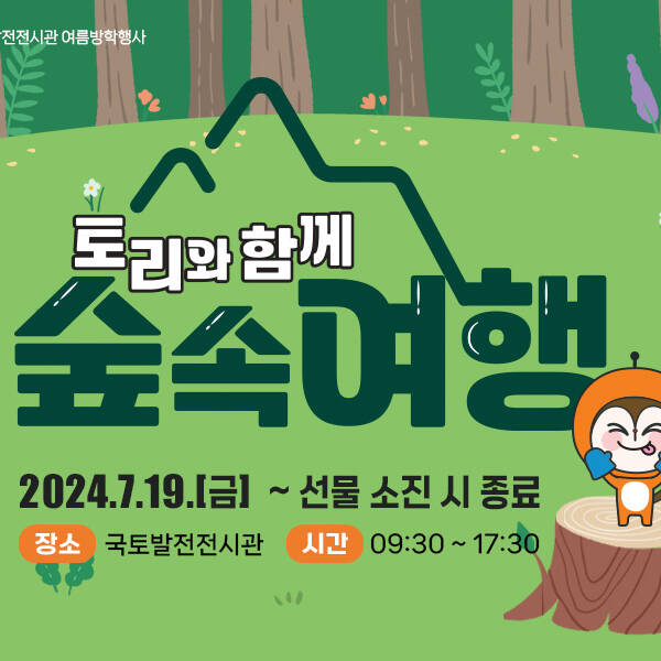 행사명 : 토리와 함께하는 숲속 여행 여름 방학을 맞아 우리 국토의 탄소 중립, 녹색 성장에 대한 관심을 함양하고, 국토발전전시관의 인지도를 높임